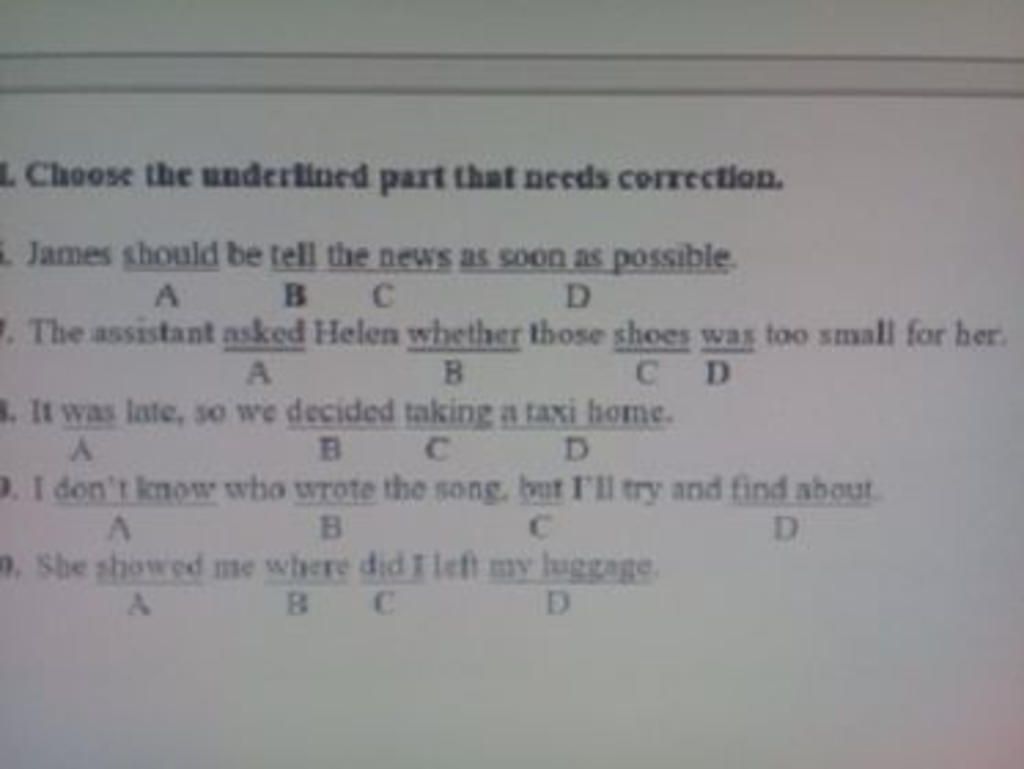 5.C:did I->I (Ở trong câu có 2 từ đề hỏi->vế thứ 2 bỏ các trợ động từ)