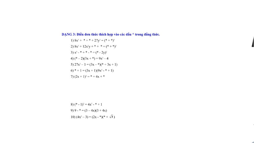 2/ $8x^3+12x^2y+6xy^2+y^3=(2x+y)^3$
