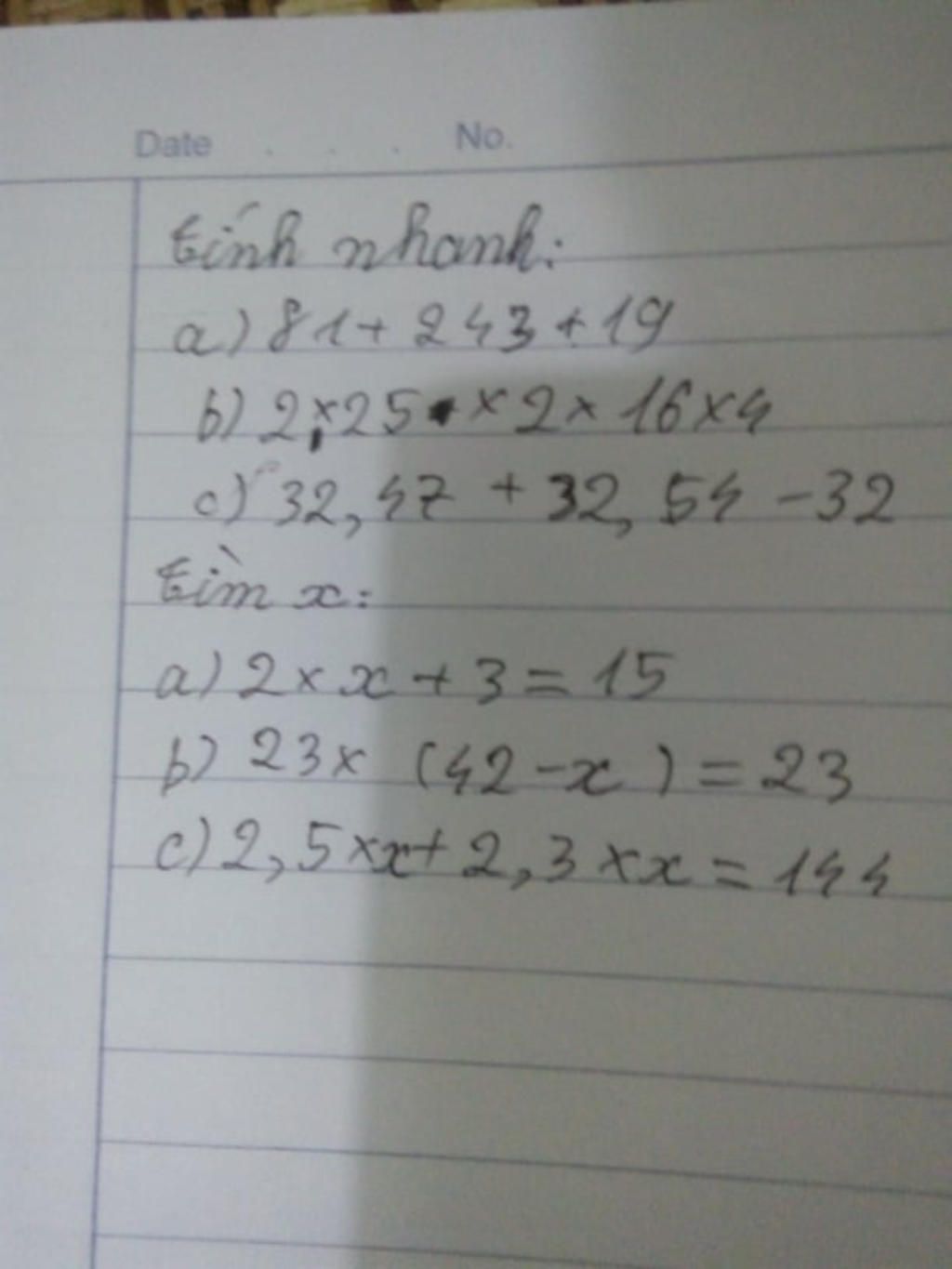 bạn ơi,phép tính nhanh cuối là 32x47 + 32x54 - 32 nha,phiền bạn giải lại hộ mk đc ko