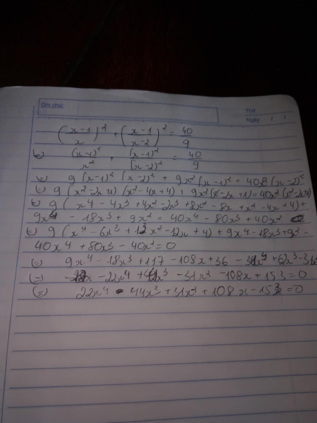 $\to 9\left(x-1\right)^2\left(x-2\right)^2+9x^2\left(x-1\right)^2=40x^2\left(x-2\right)^2$