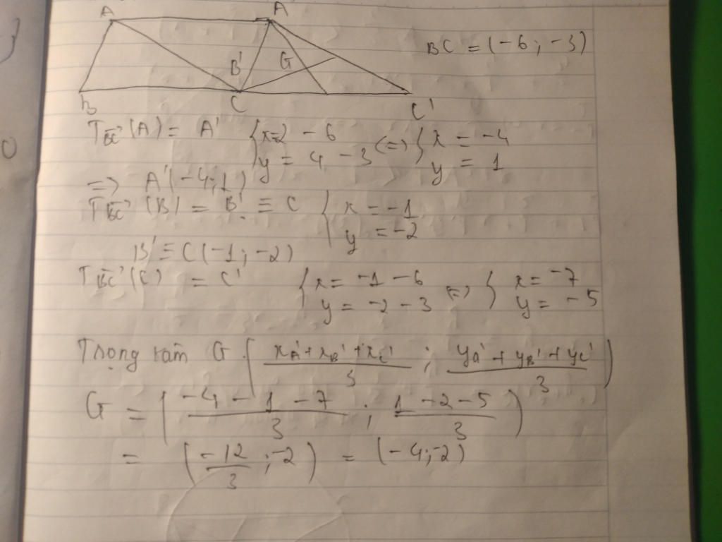 Vậy tọa độ trọng tâm của $\Delta A'B'C'$ là $G'(-4;-2)$.
