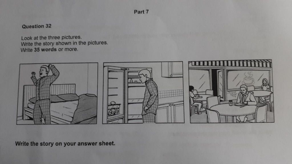 (Anh ấy thức dậy vào buổi sáng. Sau đó anh ấy đánh răng, rửa mặt. Cuối cùng anh ấy ăn sáng ở nhà hoặc ở nhà hàng.)