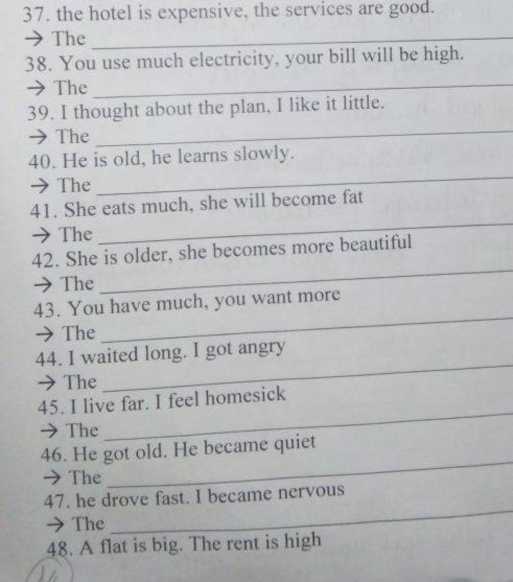 37.The more expensive the hotel is,the better the service are
