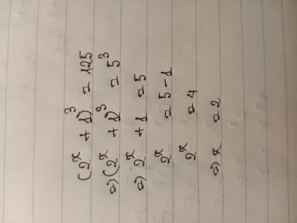 (2x+1)³= 125 => 2x+1 =5 <=> 2x= 4 <=> x=2 Vậy x=2