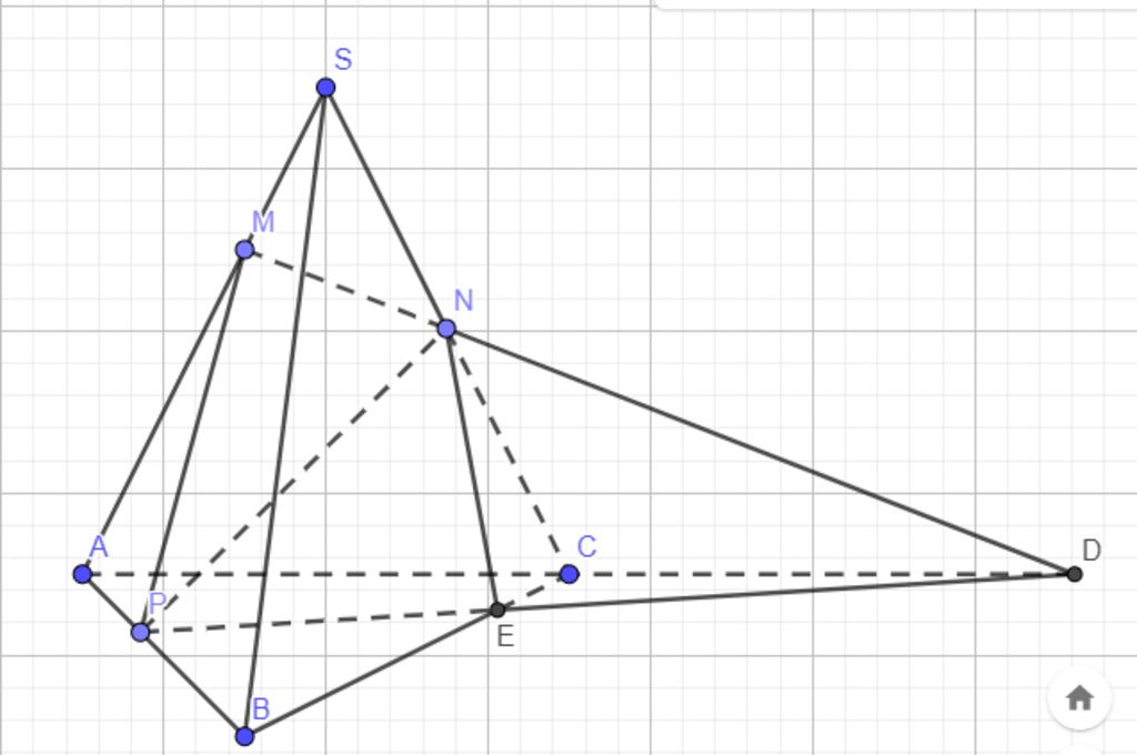b) Trong mặt (ABC), gọi E là giao điểm của DP và BC.