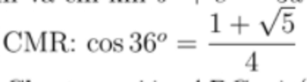 Vậy $cos36^o = \dfrac{1 + \sqrt{5}}{4}$
