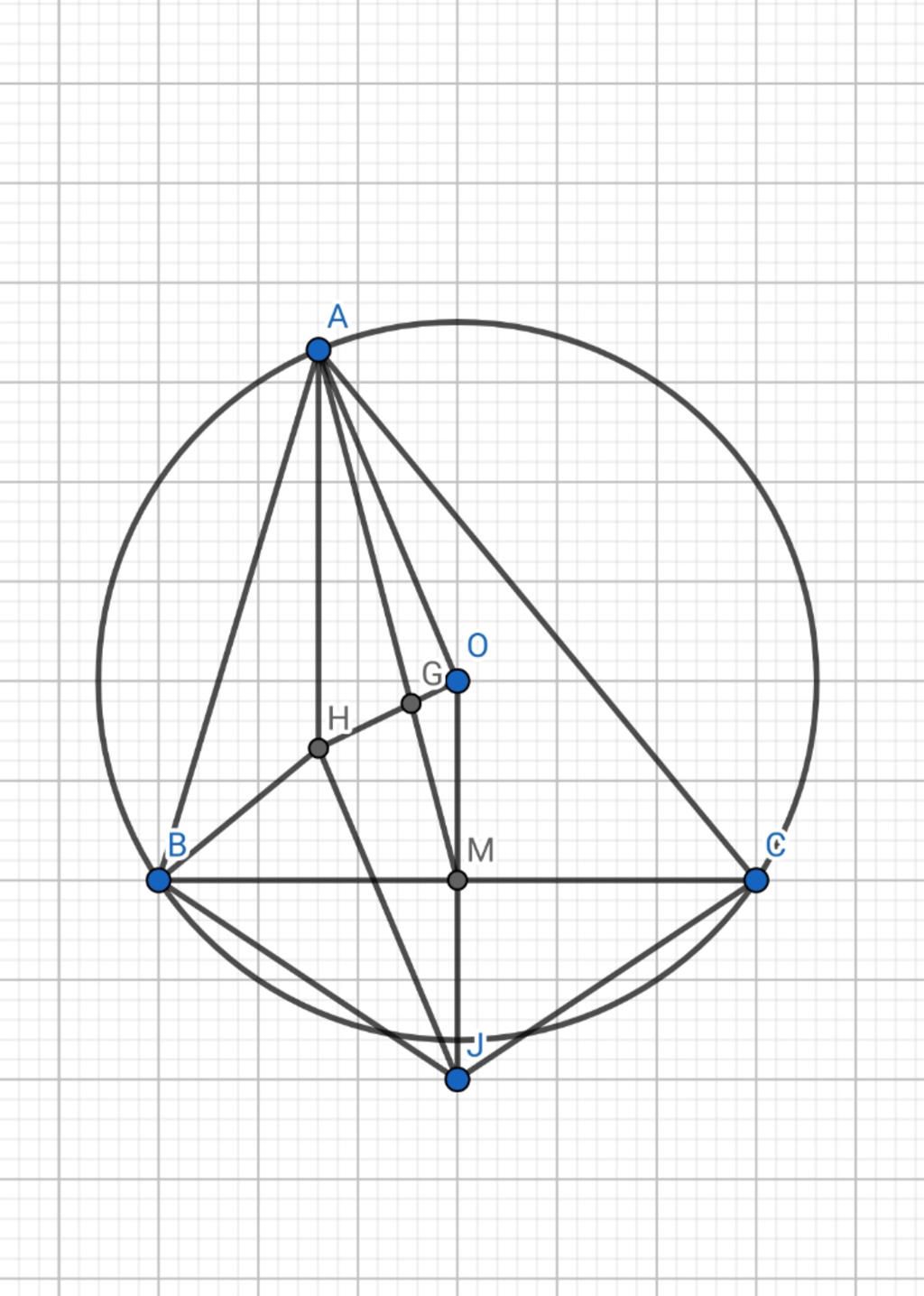 $\Rightarrow J$ là tâm đường tròn ngoại tiếp $∆BHC$