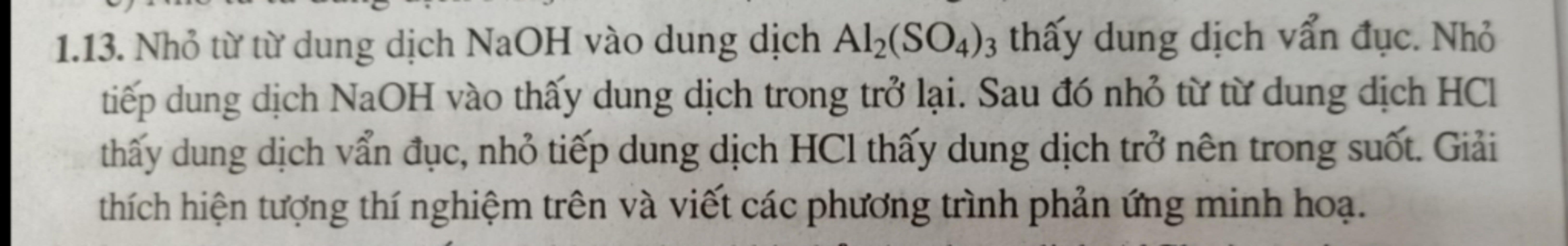 Khi thêm tiếp dung dịch $NaOH$ vào thì kết tủa $Al(OH)_3$ tan dần thành dung dịch $NaAlO_2$ có màu trong suốt :