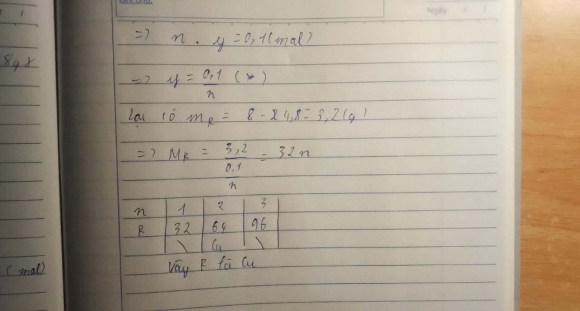 từ 2 trường hợp ,R có thể là nguyên tố đồng (Cu) hoặc sắt (Fe)