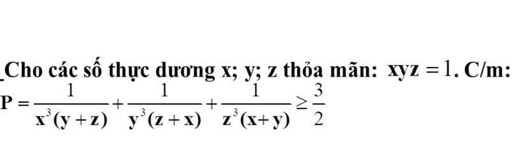 $P = \sum\frac{1}{x^3yz.\frac{y+z}{yz}}=\sum\frac{1}{x^2.\frac{y+z}{yz}}=\sum\frac{1}{x^2}.\frac{1}{\frac{1}{y}+\frac{1}{z}}$.