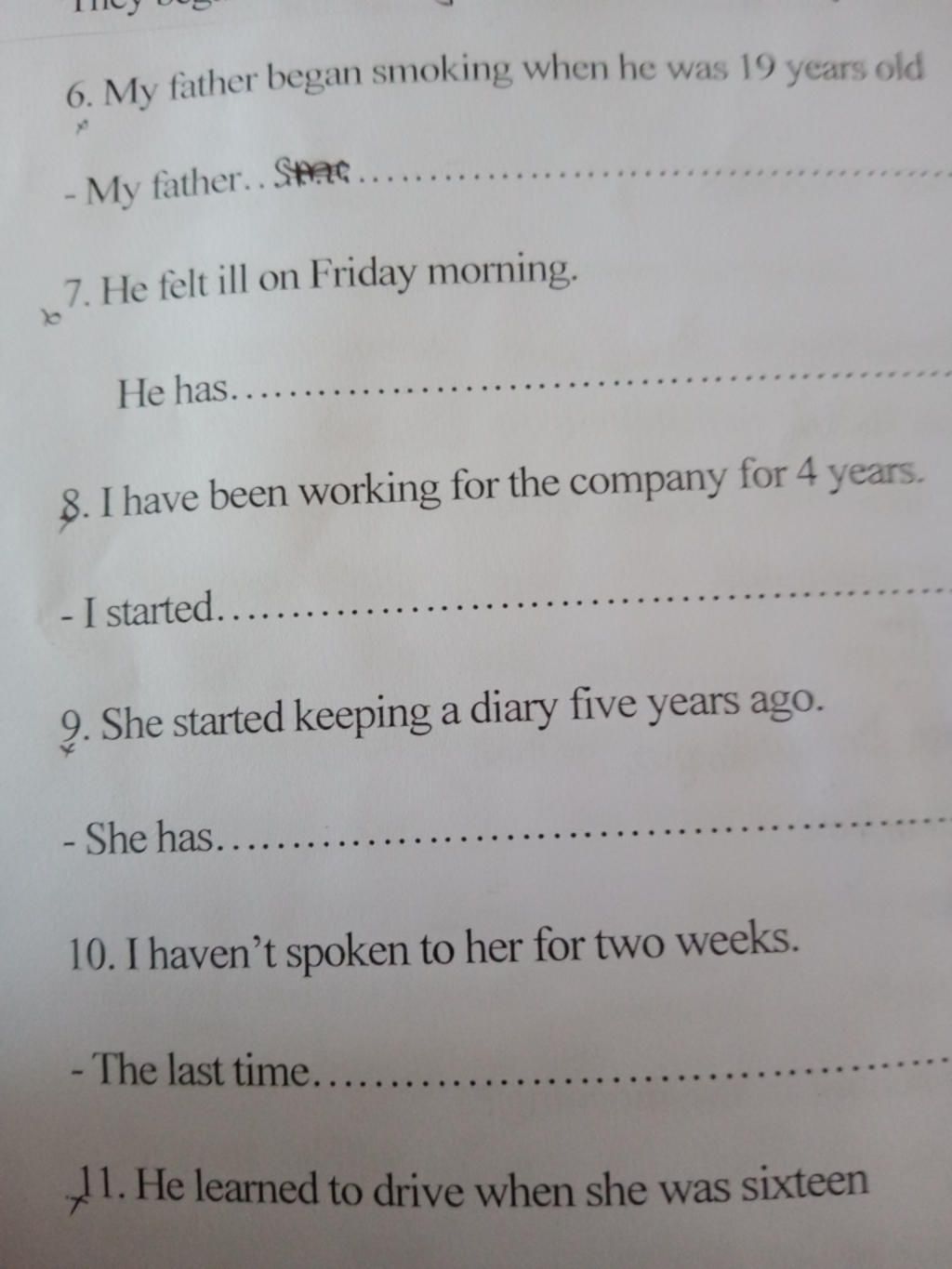 Hoặc nếu là quá khứ đơn sẽ là: My father started smoking when he was 19 years old
