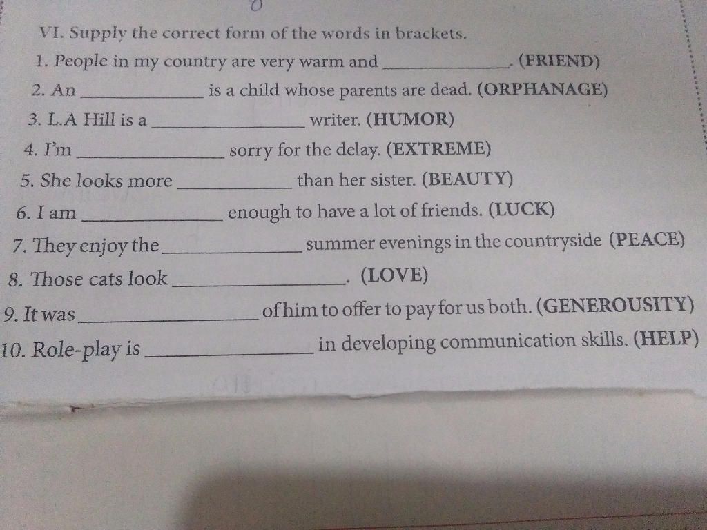 VI. Supply the correct form of the words in brackets.