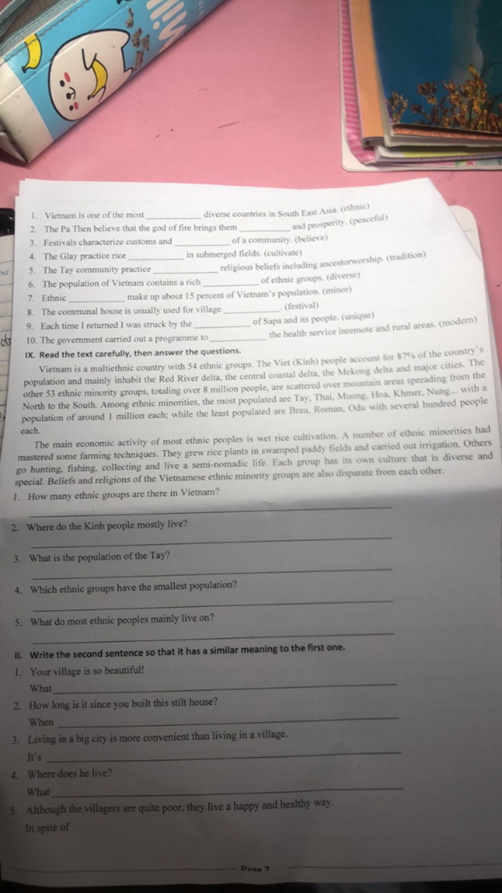 5.most ethnic peoples mainly live on wet rice cultivation.