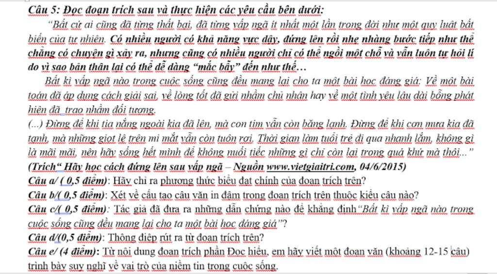 e, Đoạn văn trình bày suy nghĩ về niềm tin trong cuộc sống