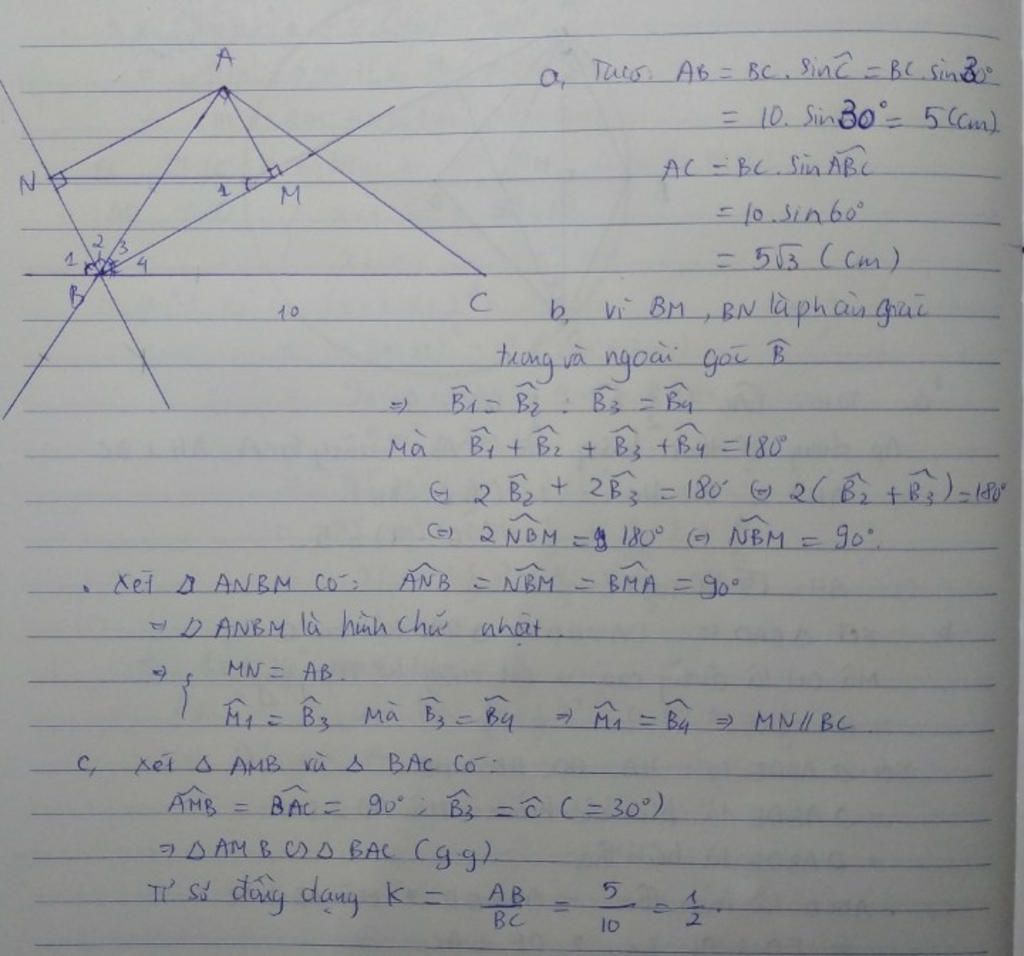 b) vì BN và BM là p/g trong và ngoài của góc B