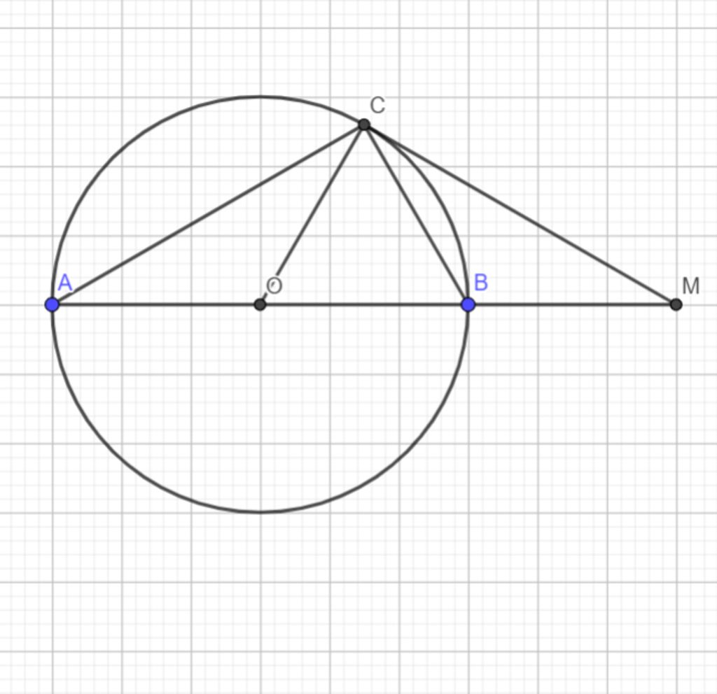 mà góc ACB = 90 độ ⇒ góc MCO = 90 độ ⇒ OC ⊥ CM mà C ∈ (O;R) ⇒ CM là tiếp tuyến của (O;R)