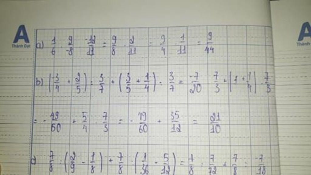 $b$) `(-3/4+2/5) :3/7+(3/5+1/4):3/7`