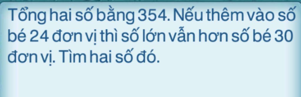 Đáp án: Số bé: `150` và số lớn: `204`