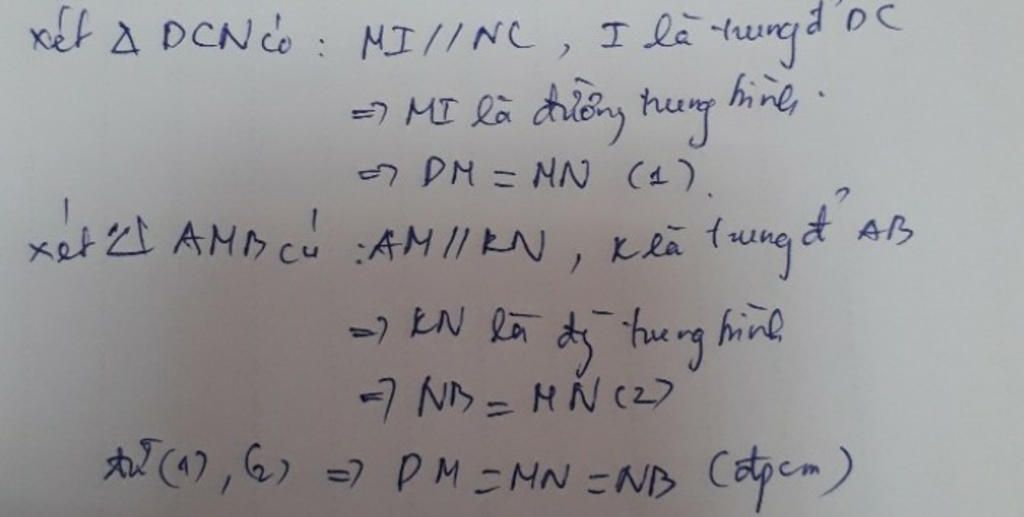 b) Vì $AKIC$ là hình bình hành ⇒ $\widehat{ADM}=\widehat{NCA}$ và $IM//CN$
