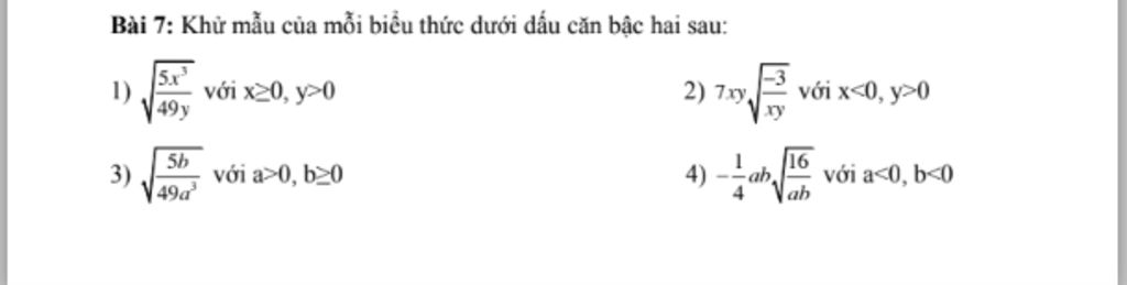 =7\sqrt{xy}.\sqrt{xy}.\sqrt{\dfrac{-3}{xy}}\\