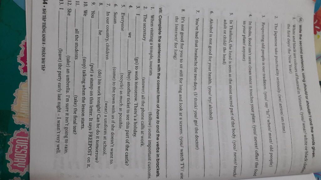 7. have to wear 8. will he have to do? 9. have to put