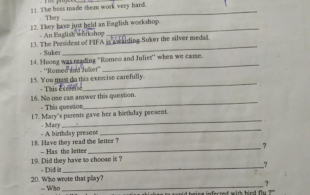 14. Huong was reading '' Romeo and Juliet '' when we came.