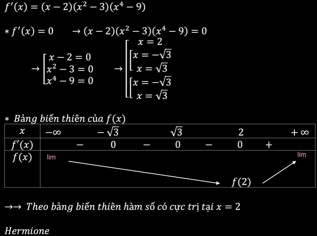 $↔ x=2$ hoặc $x=±\sqrt[]{3}$