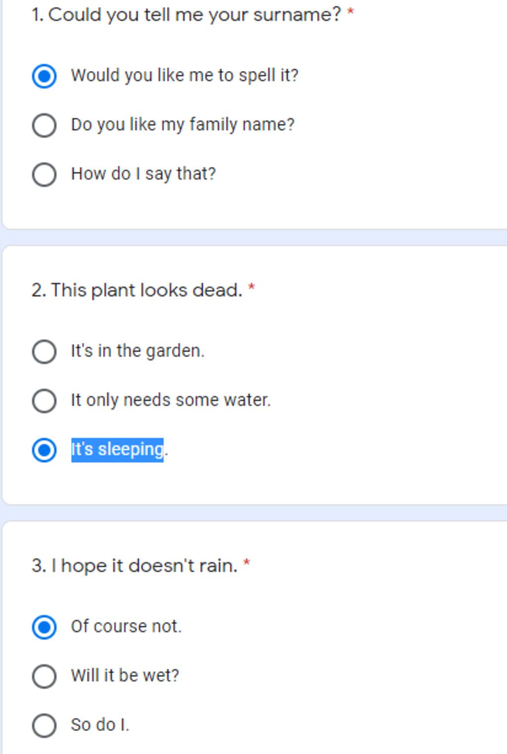 3. I hope it doesn't rain. *