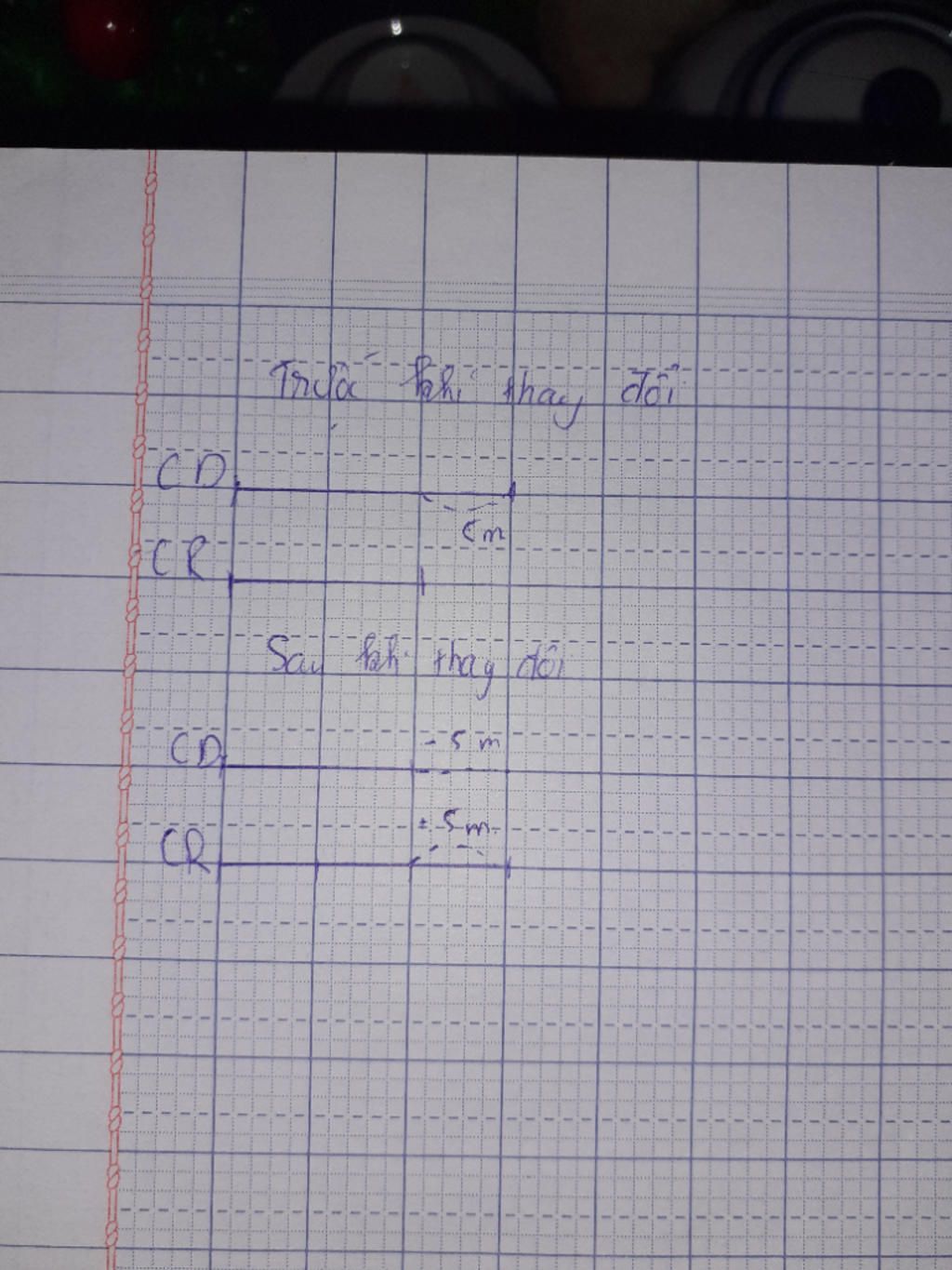 Nếu tăng chiều rộng thêm 5m, giảm chiều dài đi 5m thì chiều dài trở thành chiều rộng và chiều rộng trở thành chiều dài. Chúng hơn kém nhau 5m