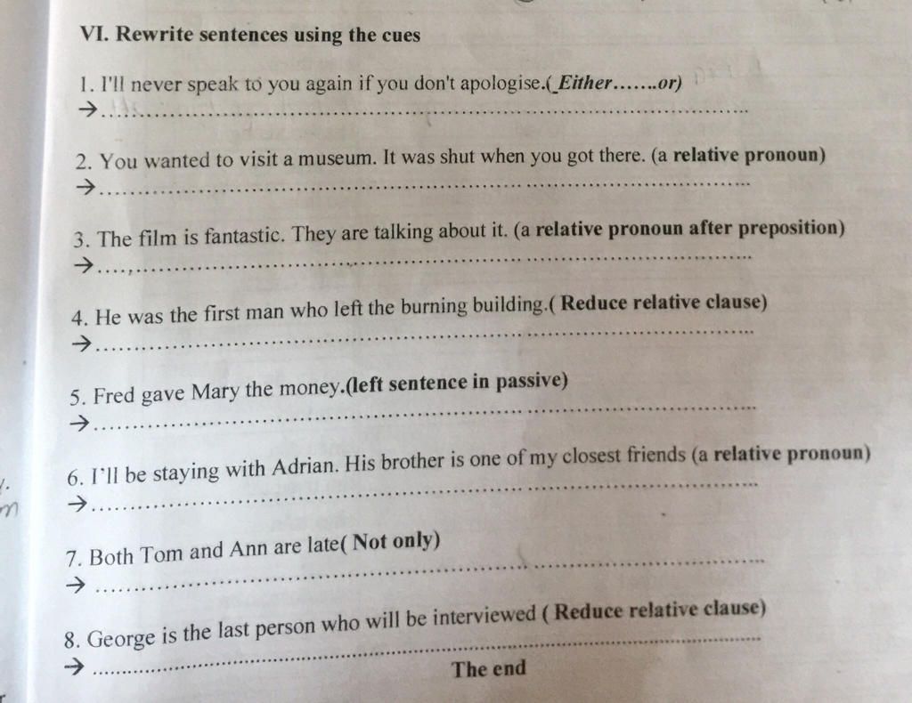 Câu 6. I'll be staying with Adrian whose brother is one of my closest friends.