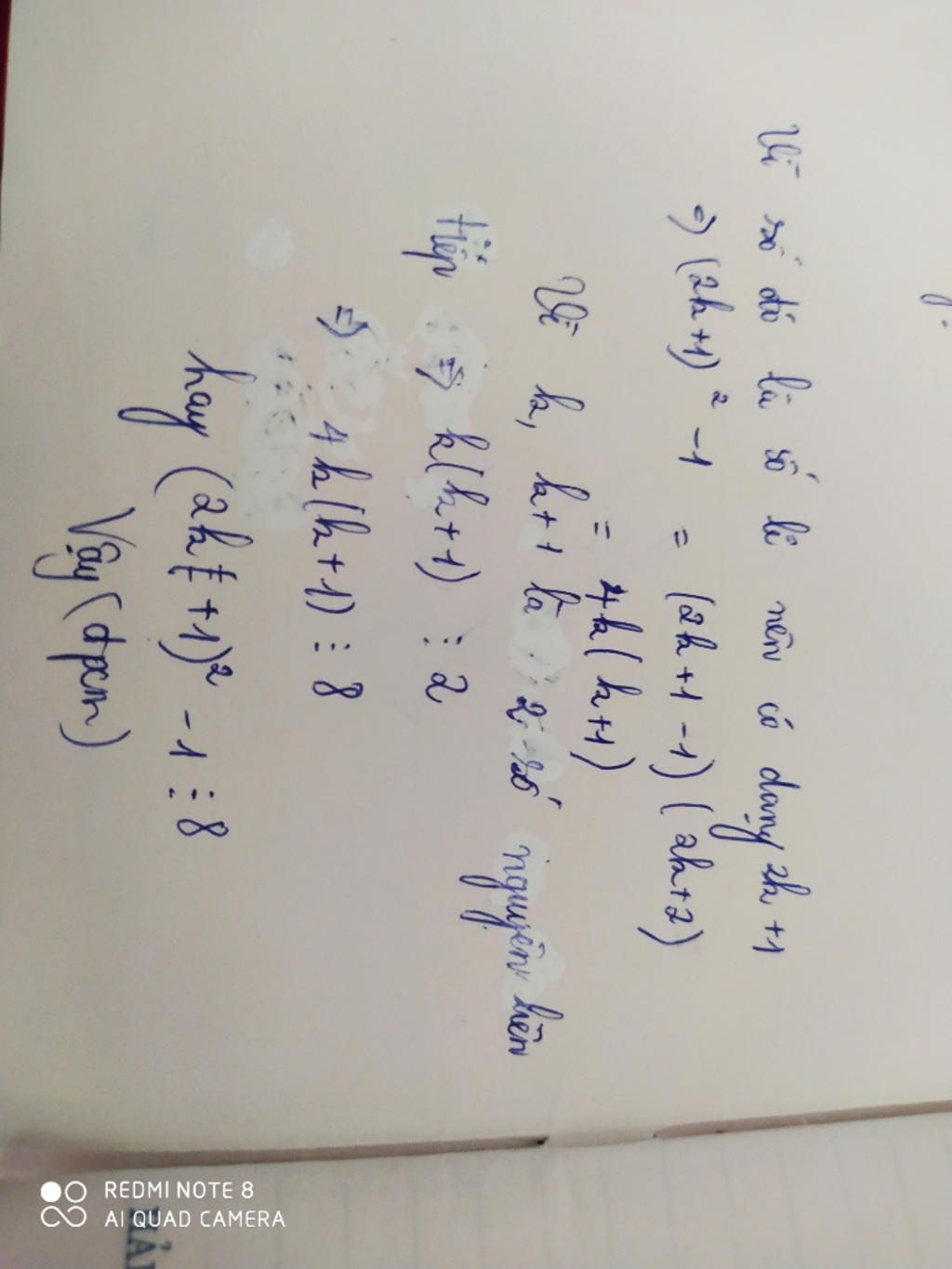 $⇔ (2k + 1)^2 - 1$ $⋮$ $8$