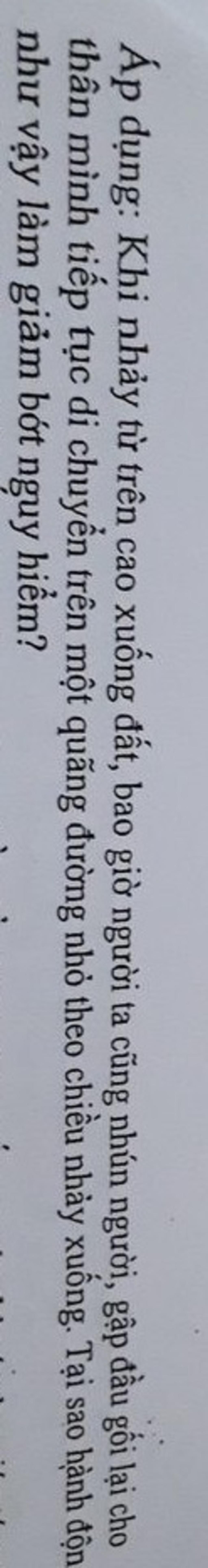 Nên làm di chuyển 1 quãng đường nhỏ theo chiều dài nhảy xuống để: chân và người ko bị tiếp xút đột ngột với mặt đấy nên: bớt nguy hiểm hơn