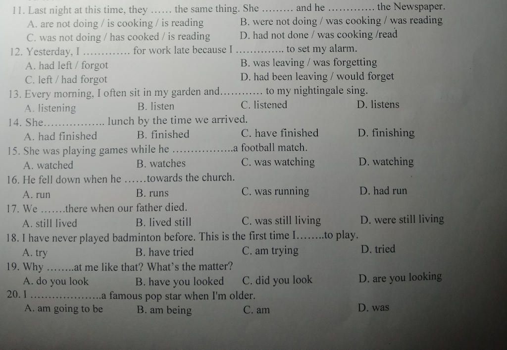 11. Last night at this time, they ..... the same thing. She ....... and he