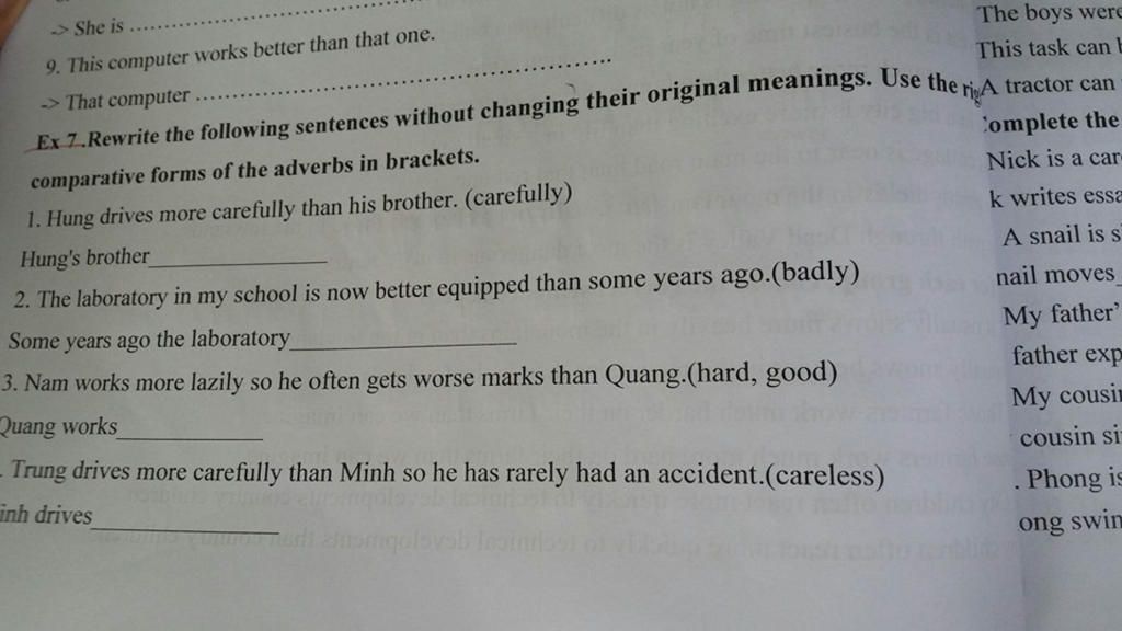 3. Quang works harder than Nam so he often gets better marks than Nam.