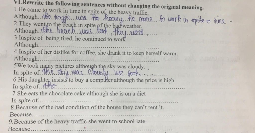 6=>In spite of the high priced ,her daughter insists to buy a computer