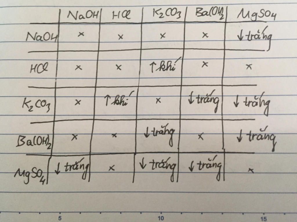 Trộn lần lượt hoá chất theo cặp, lập bảng. Suy ra: