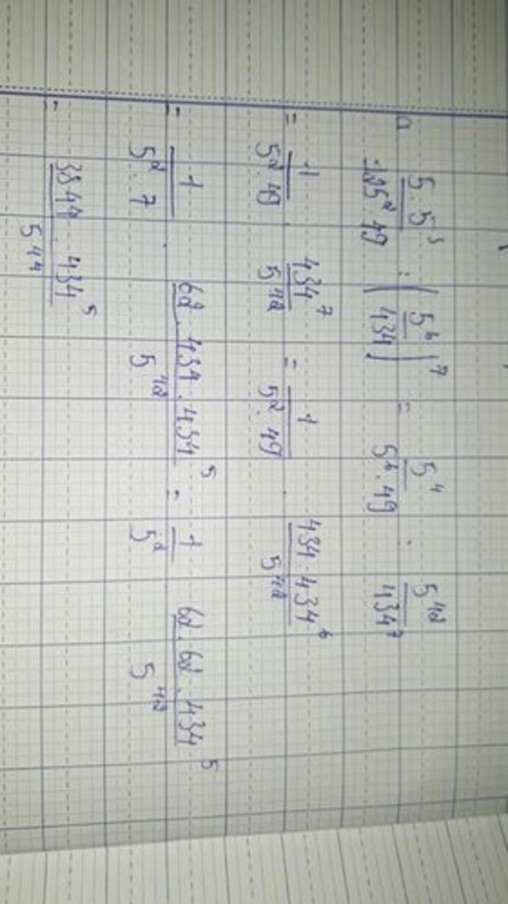 $\frac{5.5^3}{125^2.49} : (\frac{5^6}{434})^{7}$