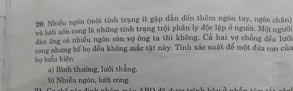 cong nhưng bố họ đều không mắc tật này. Tính xác suất đế một đứa ...