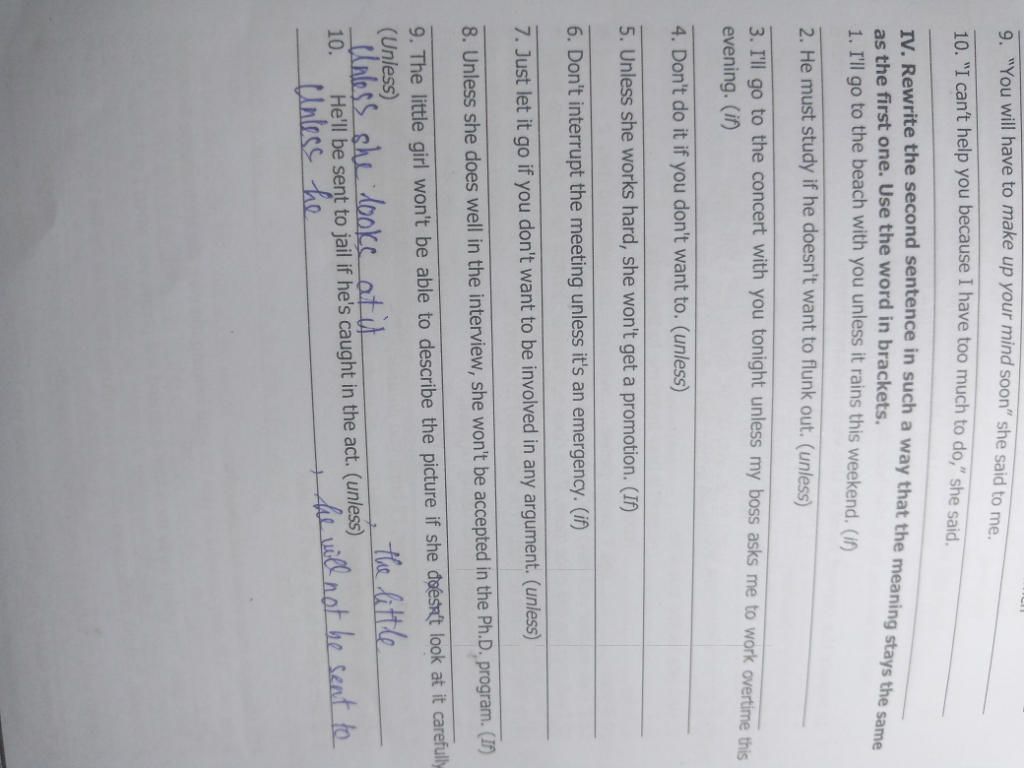 9. The little girl won't be able to describe the picture unless she looks at it carefully.