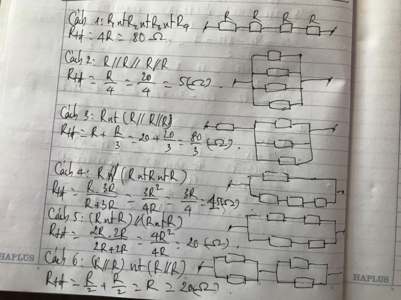 Từ 4 điện trở giống nhau , ta có thể vẽ được 8 mạch điện khác nhau .
