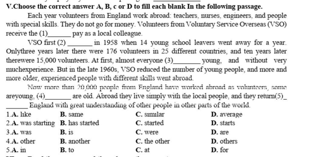 V.Choose the correct answer A, B, c or D to fill each blank In the following passage.