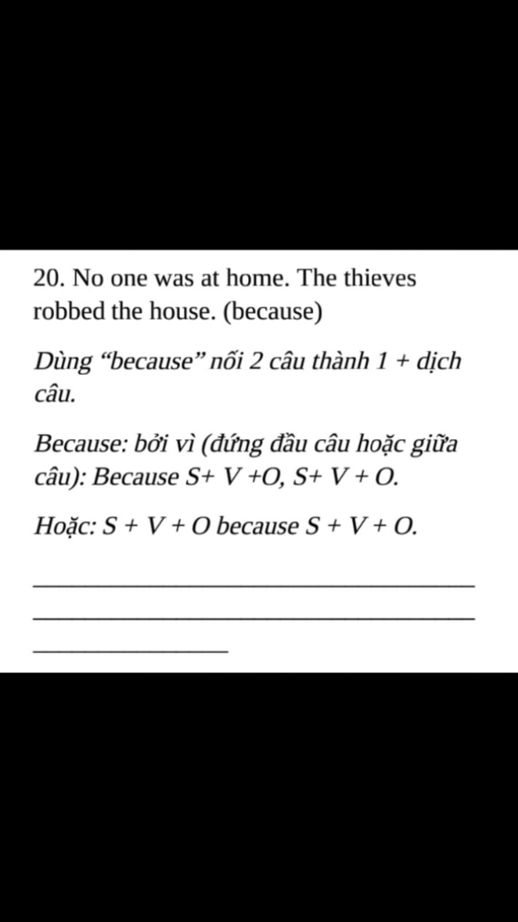 $\text{20. Because no one was at home, the thieves robbed the house}$
