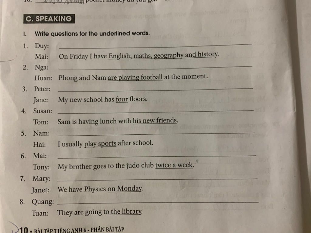 Write questions for the underlined words.