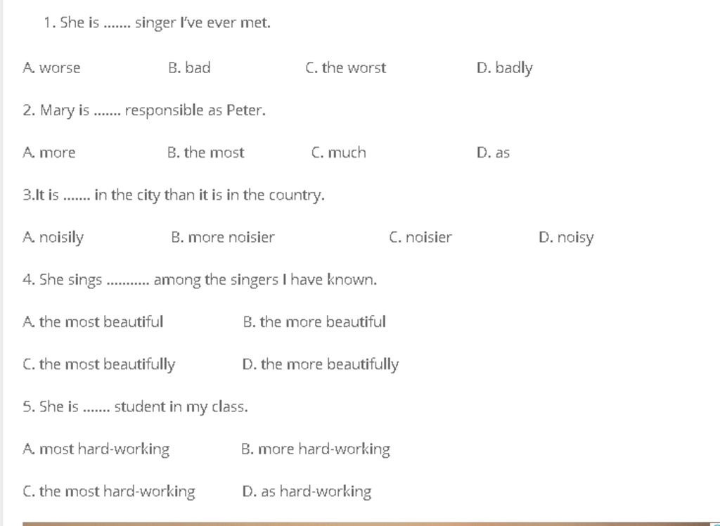 ⇒Không có từ `than` nên các đáp án B;C;D loại