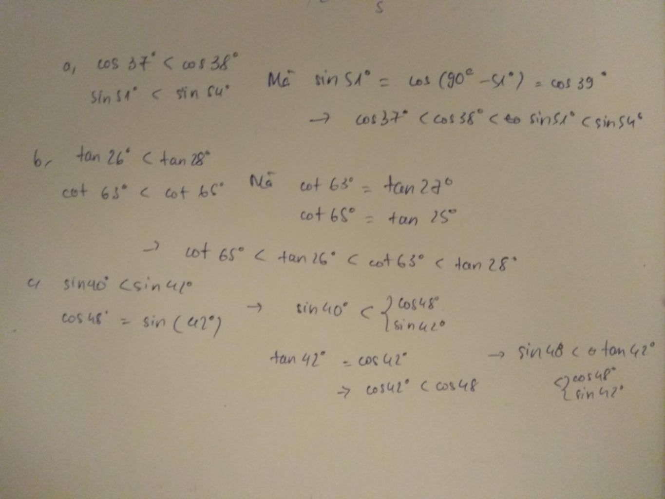 Hay: `sin51^0;cos38^0;cos37^0;sin54^0`