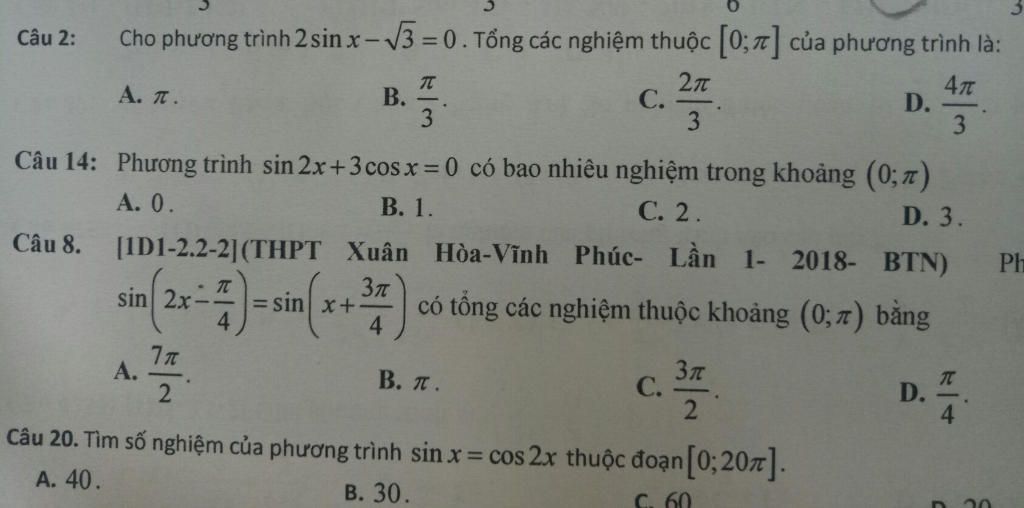 x \in \left[ {0;\pi } \right] \Rightarrow x \in \left\{ {\frac{\pi }{3} + \frac{{2\pi }}{3}} \right\}