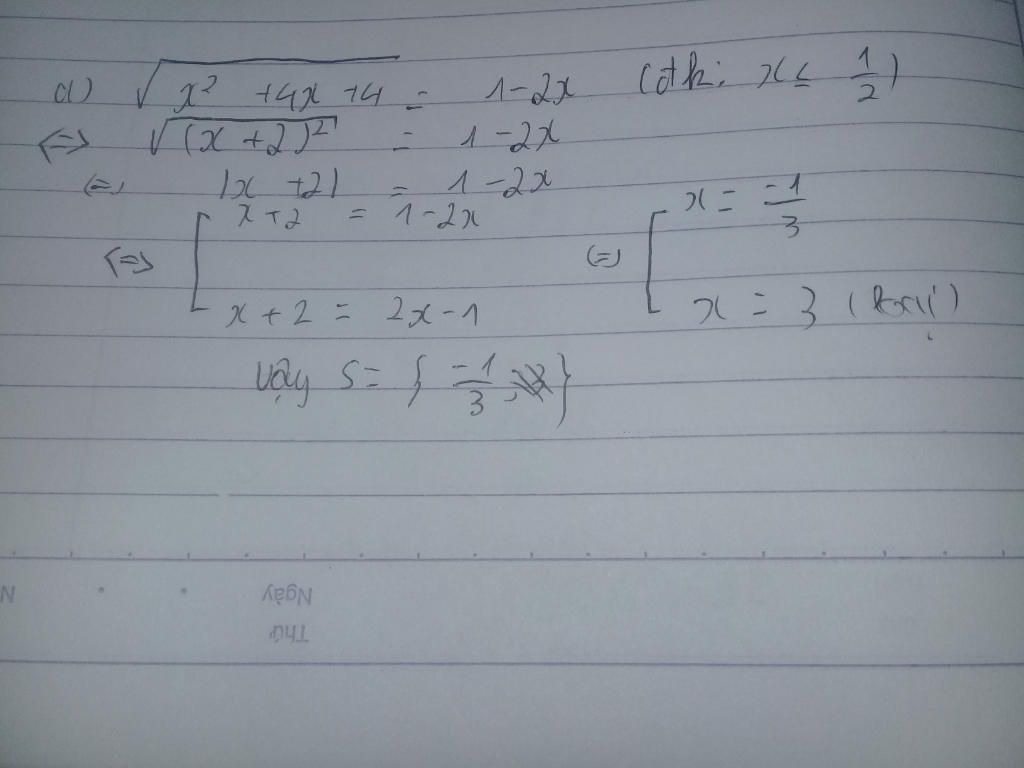 `⇔` \(\left[ \begin{array}{l}x=3\ (loại)\\x=-\dfrac{1}{3}\ (TM)\end{array} \right.\)