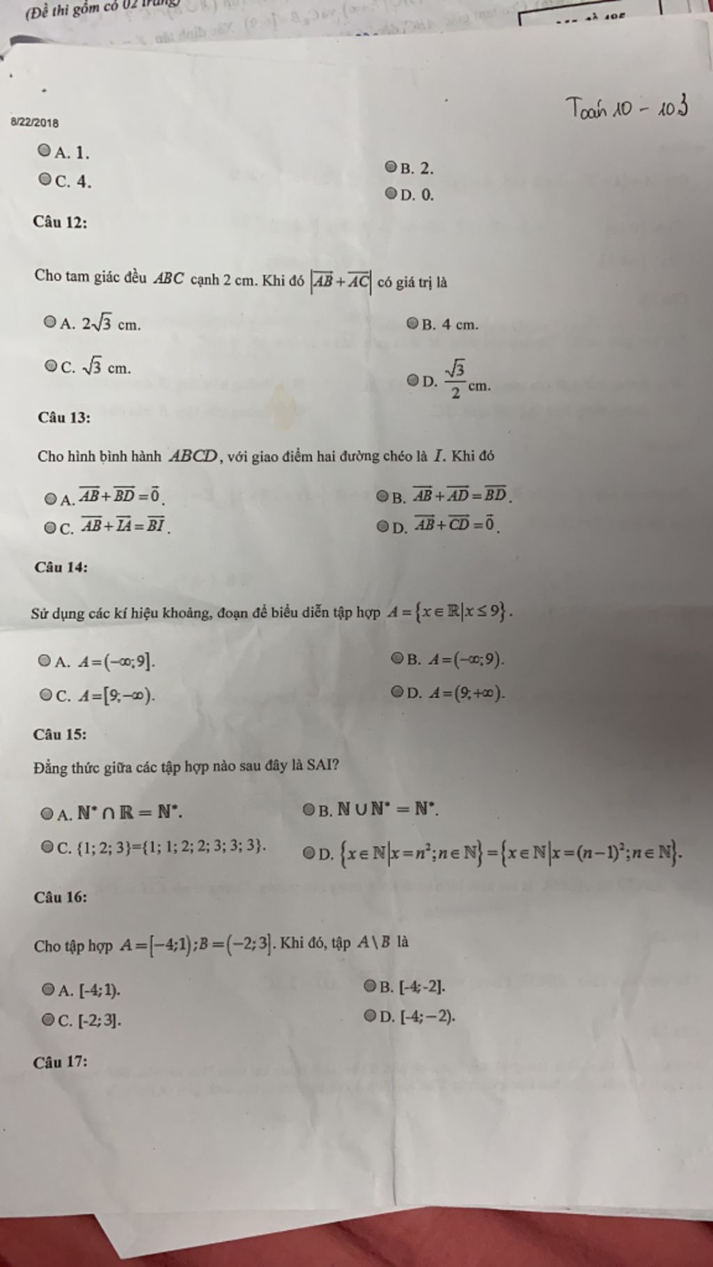 15. $\mathbb{N}$ là tập số tự nhiên, $\mathbb{N^*}$ là tập số tự nhiên khác 0. Vì $\mathbb{N^*}\subset \mathbb{N}$ nên hợp bằng $\mathbb{N}$.