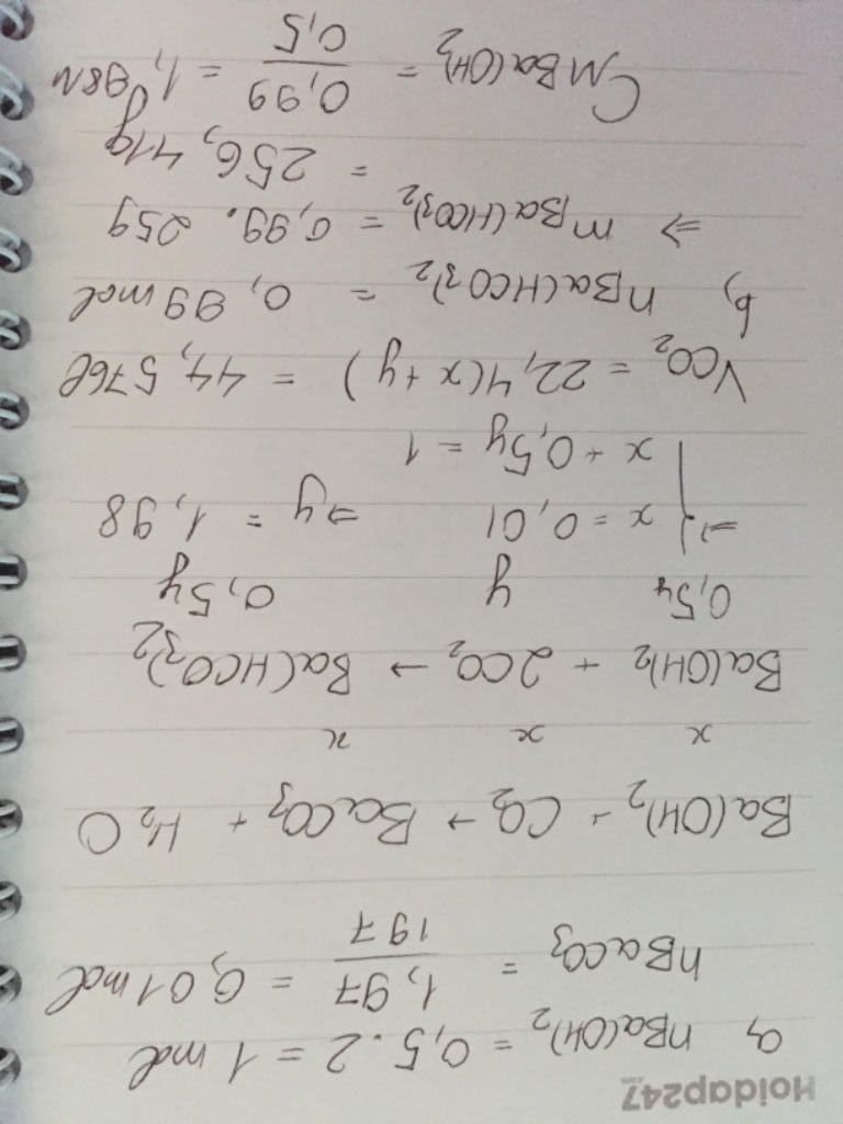 $\to n_{Ba(HCO_3)_2} = 1 - 0,01 = 0,99(mol)$