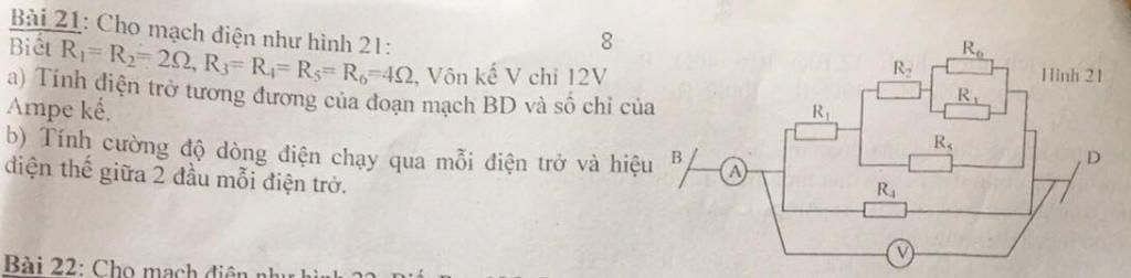 Số chỉ của ampe kế: \(I=\dfrac{U}{{{R}_{td}}}=\frac{12}{2}=6A\)